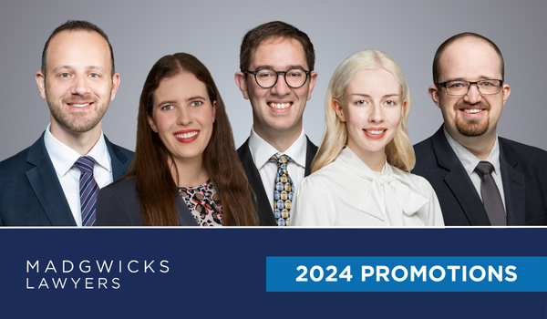 Madgwicks Lawyers proudly announces the internal promotion of five legal professionals, effective 1 July 2024.